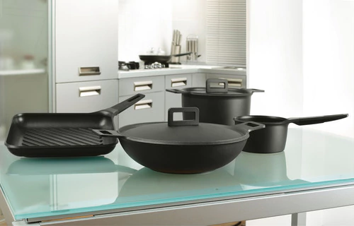 Un icono de diseño simple y minimalista, el TVS Archetun encarna las propiedades de rendimiento más altas en su geometría más pura y estricta. Esto se consigue gracias al alto espesor del cuerpo de aleación de aluminio fundido a alta presión, así como gracias a unos cómodos mangos atérmicos fabricados en resina termoactiva y un revestimiento de Teflón Platino antiadherente de alta calidad con alta resistencia al desgaste abrasivo, proporcionando Protección duradera contra el impacto de los utensilios metálicos de cocina.