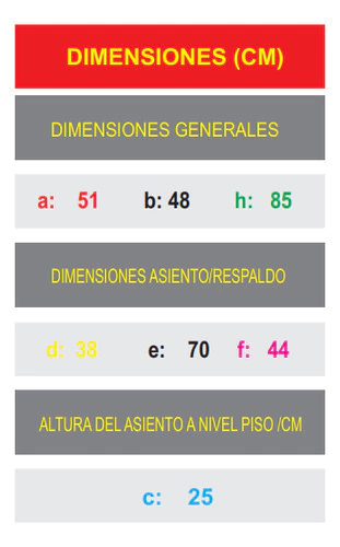 - Dimensiones Asiento 45x45 cm Respaldo 70 cm