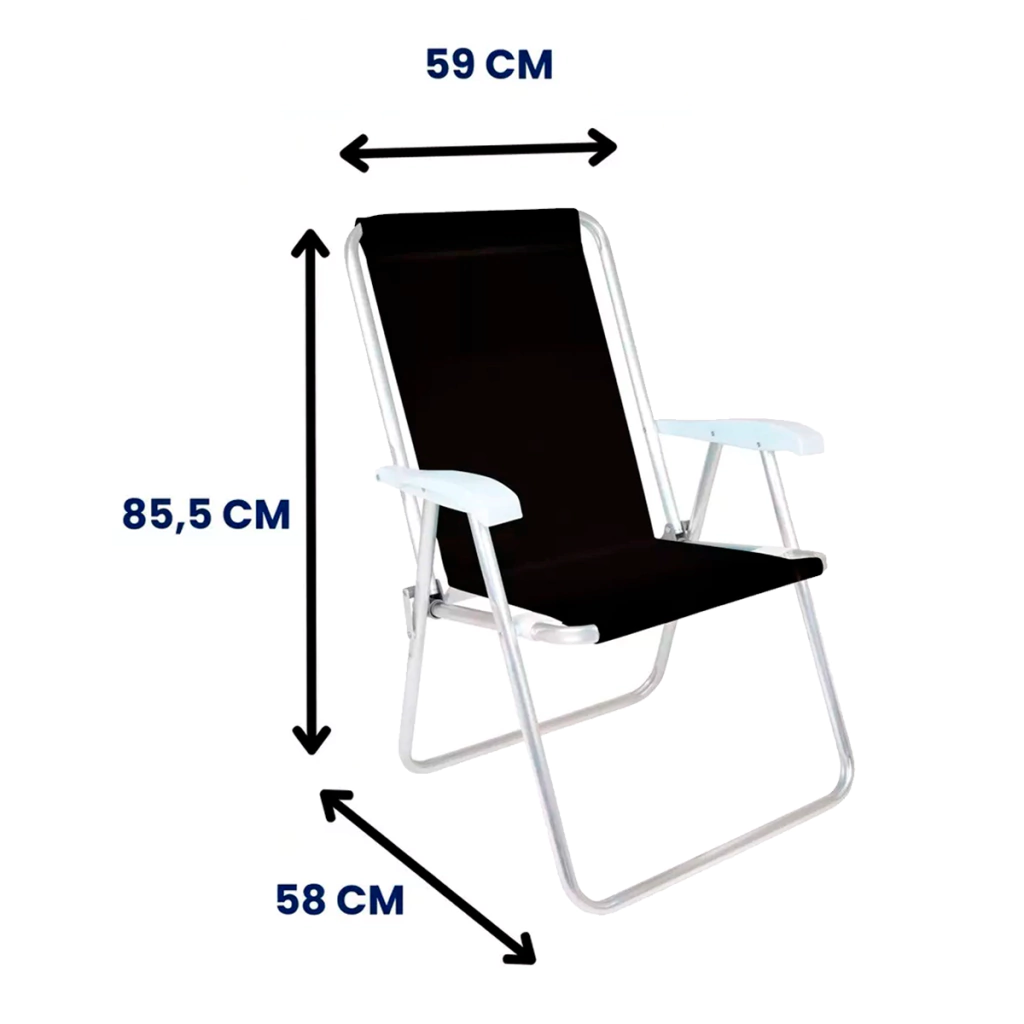 Su respaldo más alto mide 85,5 cm de altura y sus brazos de plástico tienen forma anatómica. A pesar de su tamaño, es fácil de transportar gracias a su material ligero. Soporta hasta 120 kg. Plegable, se puede colocar fácilmente en cualquier rincón.