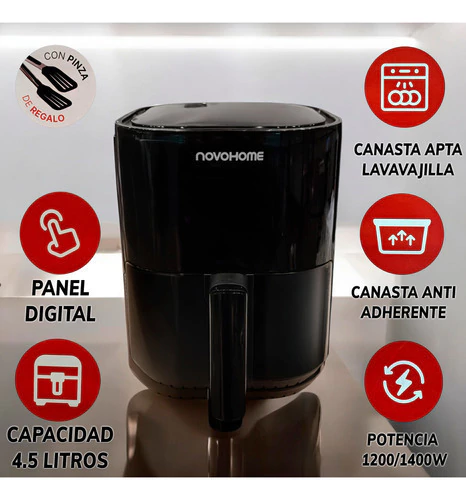 Freidora De Aire 4.5 Lts + Panquequera Crepera Novohome