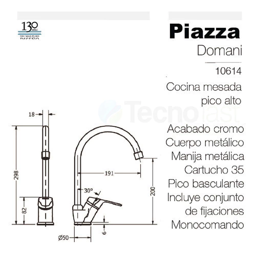 Griferia Monocomando Piazza Cocina Canilla Pico Alto Domani