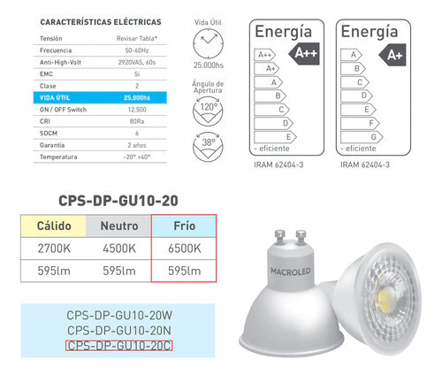 Lampara Dicroica Eco Led Macroled Fria 7w 6500k 595lm