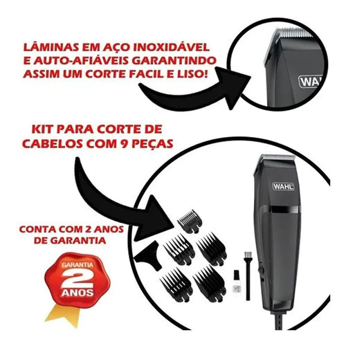 DescriçãoGarantiaKit integral de corte de cabello. Las cuchillas de acero al carbono autoafilables están precisamente afiladas para que se mantengan de ese modo por más tiempo. Incluye 5 peines peines guía que hacen que sea más fácil obtener el corte correcto, la primera vez.