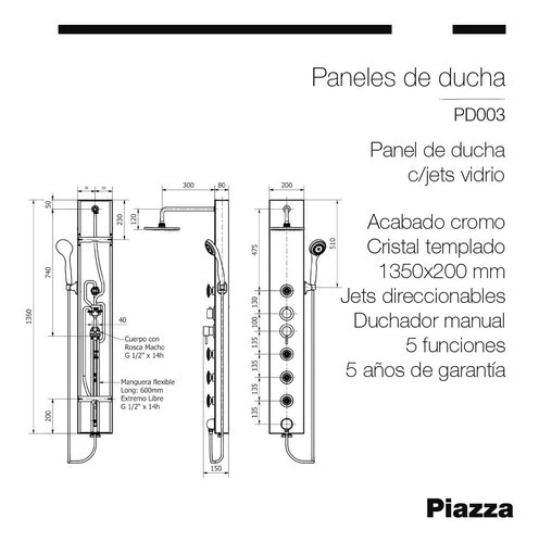 Panel Ducha Piazza Pd003 Escocesa Jets Direccionables Vidrio
