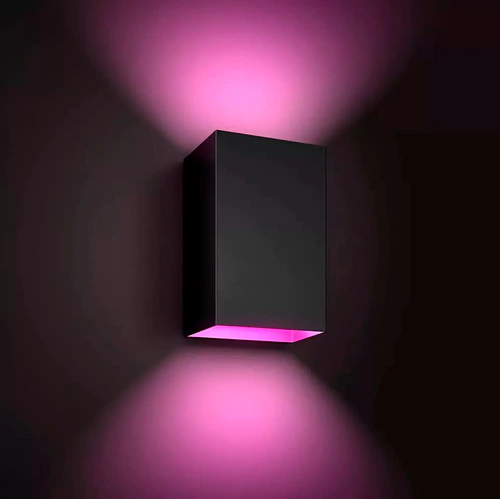 Transforme su hogar en una experiencia festiva con luces Philips Hue Resonate Aplique Exterior Inteligente Multicolor Color Negro. Rojos y verdes brillantes para celebraciones, pasteles sutiles para la primavera o un brillo púrpura inquietante para Halloween.