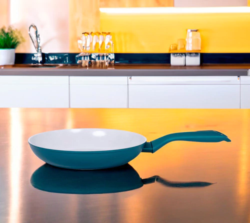 El sartén azul de alta calidad de la marca TVS de la serie Ceramica D'autore con diámetros de 20cm. Tiene un revestimiento cerámico antiadherente de nueva generación Eco Ok Evolution, que. asegura su larga vida útil sin pérdida de funcionalidad. Este modelo es ideal para utilizar en placa de inducción gracias a su fondo grueso (3,5 mm), así como para otro tipo de placas. Mango ergonómico con revestimiento suave al tacto. Las sartenes Ceramica D'autore son aptas para lavavajillas