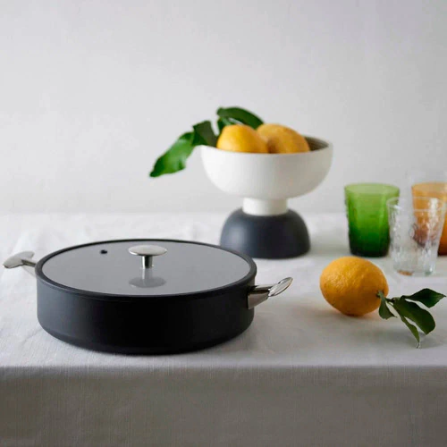 La sarten TVS "Maestrale" está fabricada en aluminio con acabado lacado en negro y tiene una excelente conductividad térmica. Tiene revestimiento Toptek de 3 capas con un grosor de fondo de 5 mm. Los mangos ergonómicos, fabricados en acero inoxidable, tienen una forma suave que complementa el estilo de la olla. La tapa, fabricada en vidrio curado, tiene una junta de silicona, por lo que encaja perfectamente en la sartén y asegura una distribución uniforme de la temperatura en el centro de la misma.