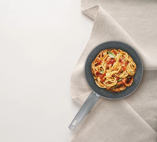 Con revestimiento reforzado con minerales y un nuevo sensor térmico, las sartenes, ollas, sartenes, cacerolas y cazuelas Mineralia TVS garantizan capacidades antiadherentes de larga duración, una cocción fácil y eficiente para el exigente entorno del chef profesional.