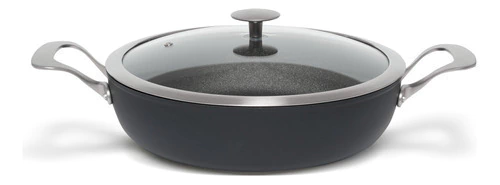 Tapa de cristal con borde y pomo de acero y válvula de ventilación de vapor para tener siempre bajo control la cocción.