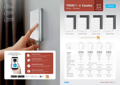 MACROLED TECLA TOKIO SMART NEGRA 3 CANALES AC100-240v 10a MAX