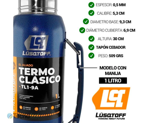 Termo Acero Inox 1 Litro Lusqtoff Azul Frio Calor Manija