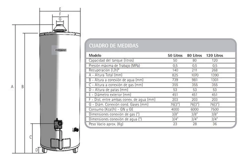 Termotanque A Gas de Pie 80 litros - Sherman by Rheem