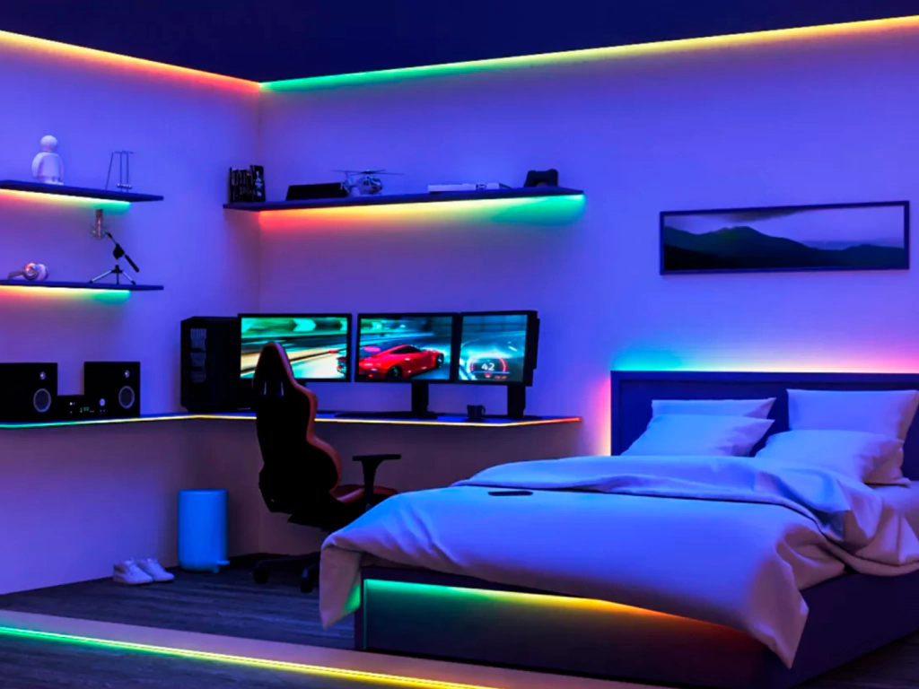 Nuestras tiras de luz RGBIC de 5 m están diseñadas para adaptarse y embellecer espacios de tamaño mediano gracias a sus más de 16 millones de colores sólidos.